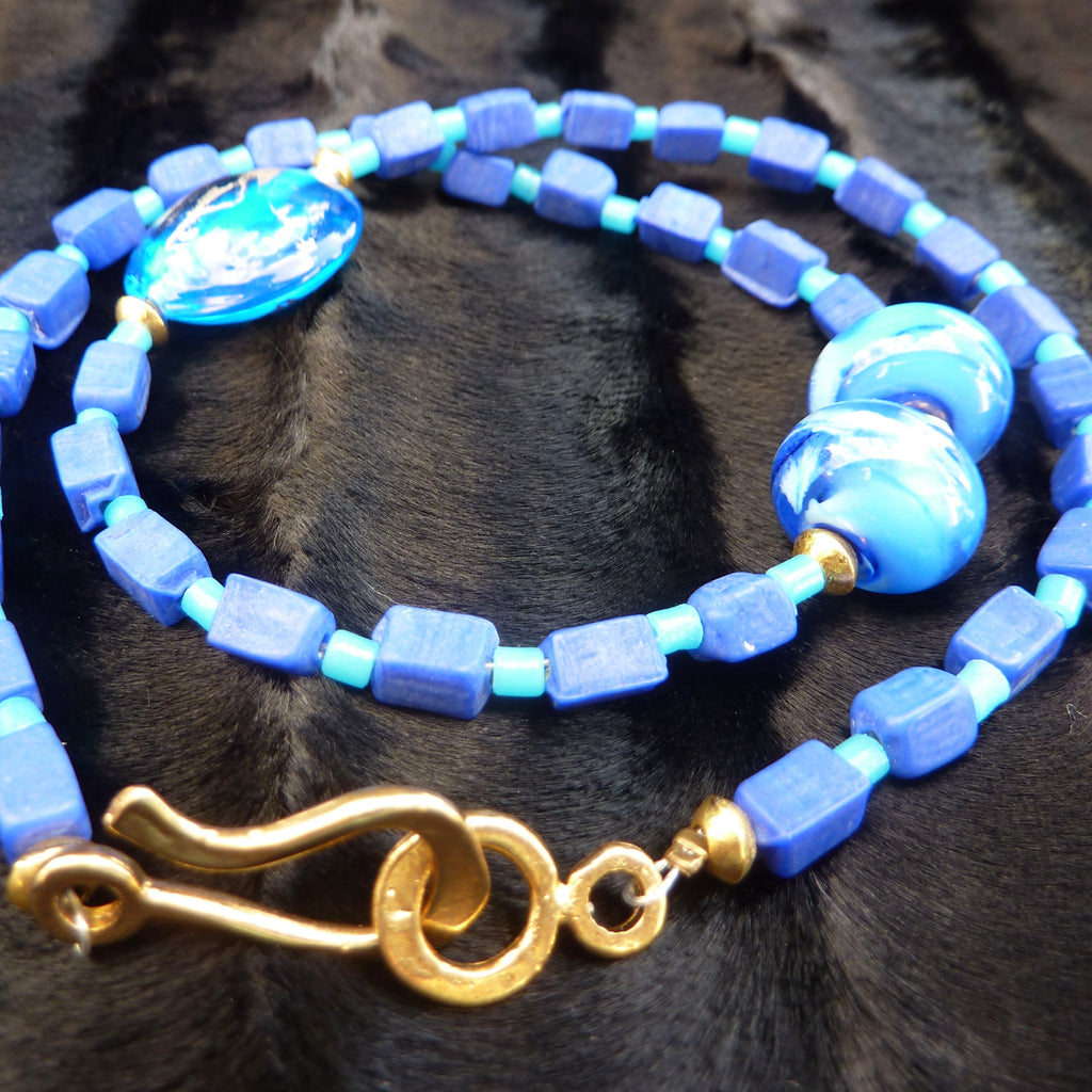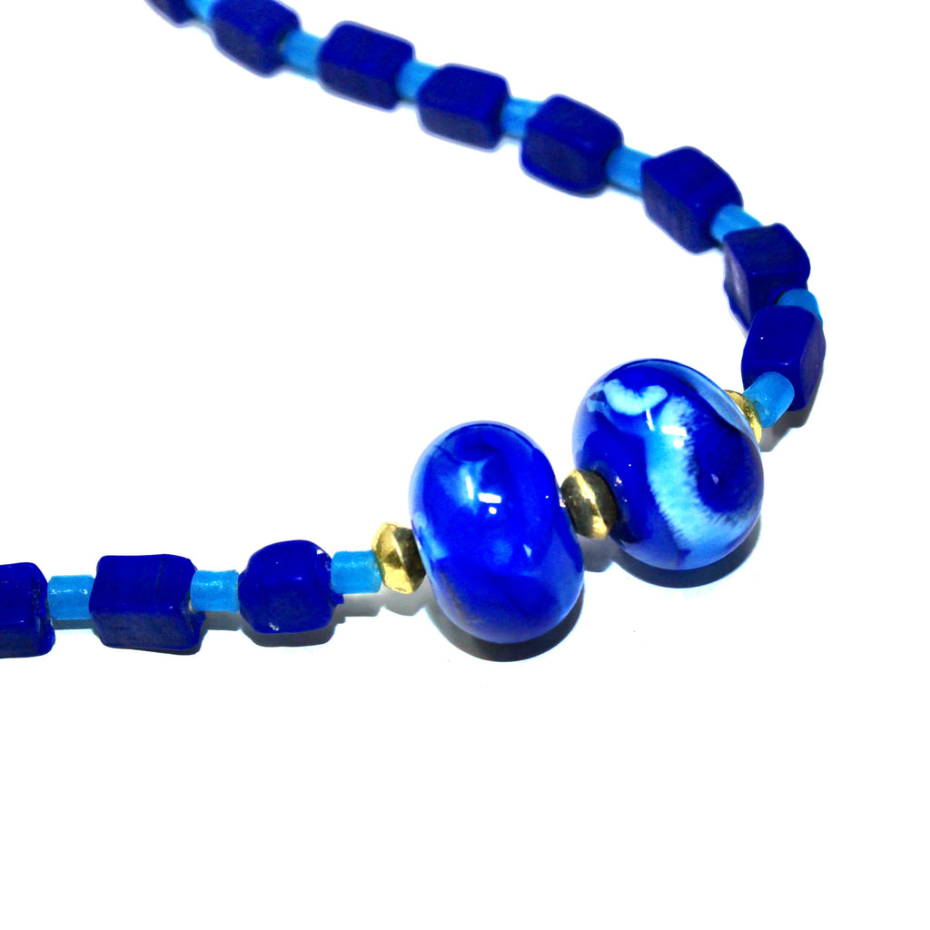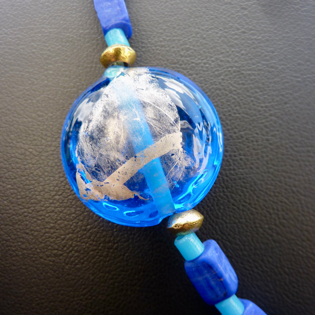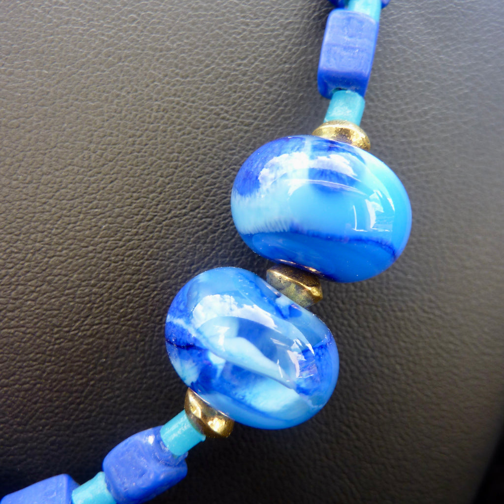 Collier Perle d'art filé à la flamme en verre de Murano Abelia Bleuet