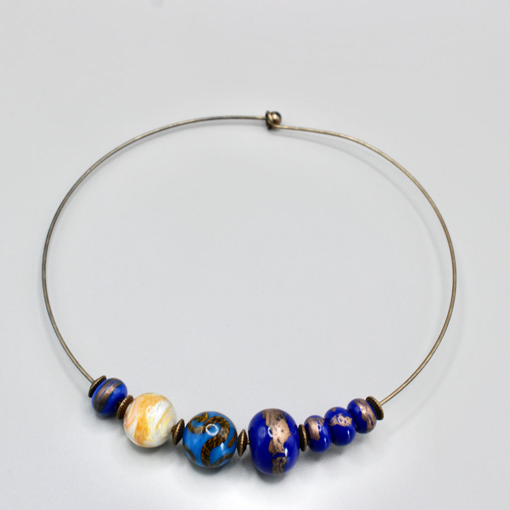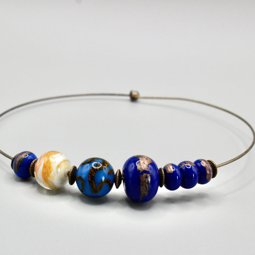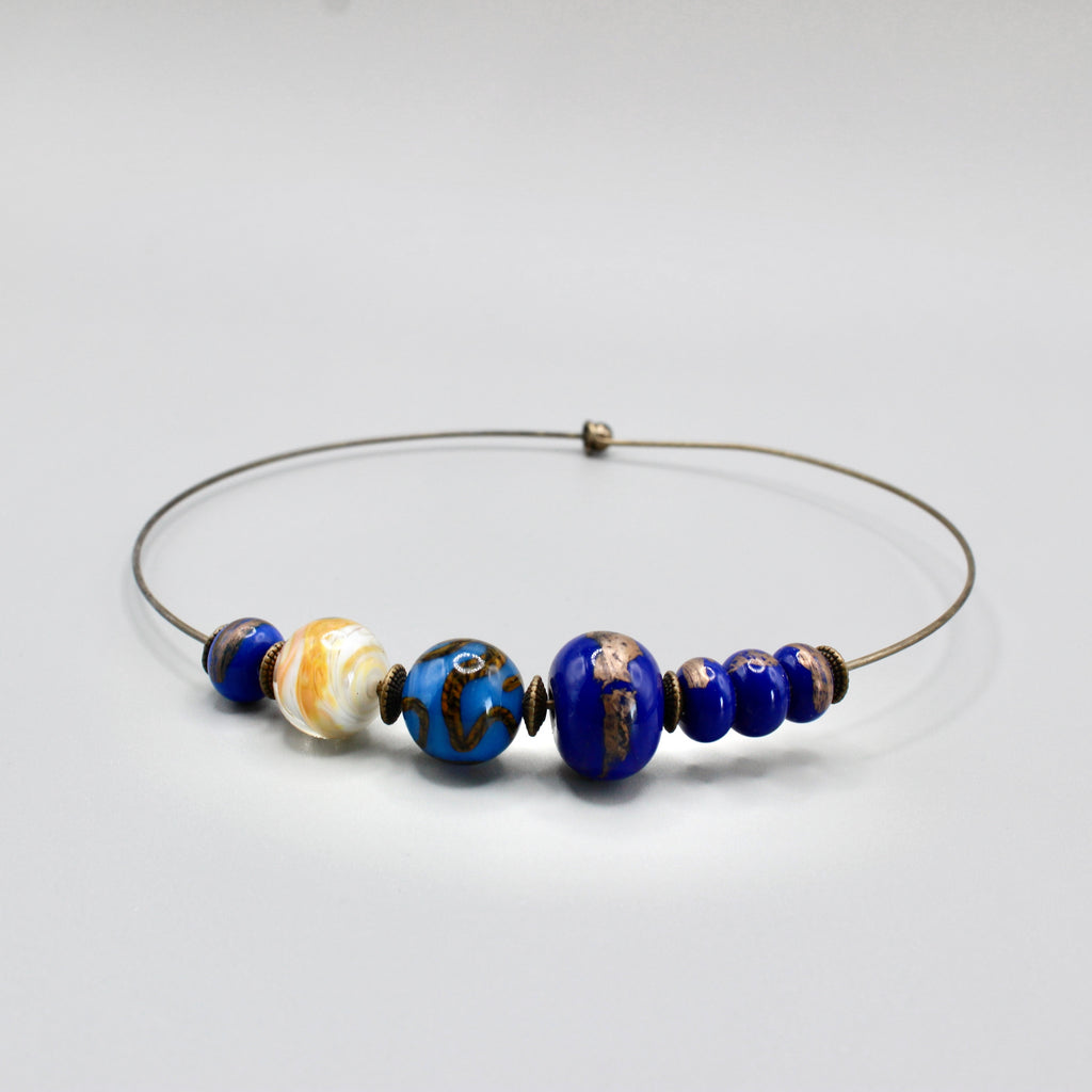 Collier ras de cou semi rigide Perles d'art filé à la flamme en verre de Murano