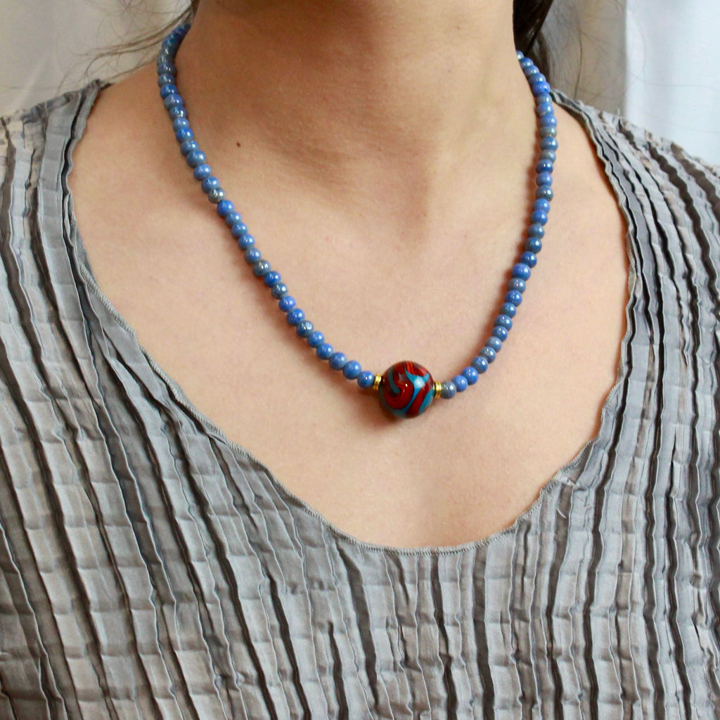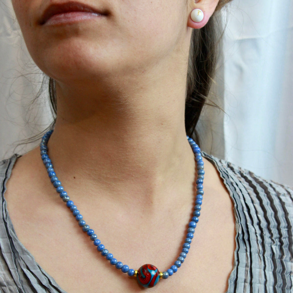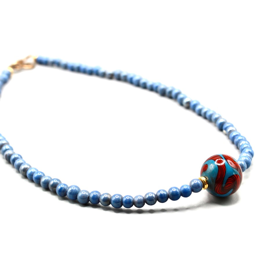 Collier ras de cou Perles d'art filé à la flamme en verre de Murano