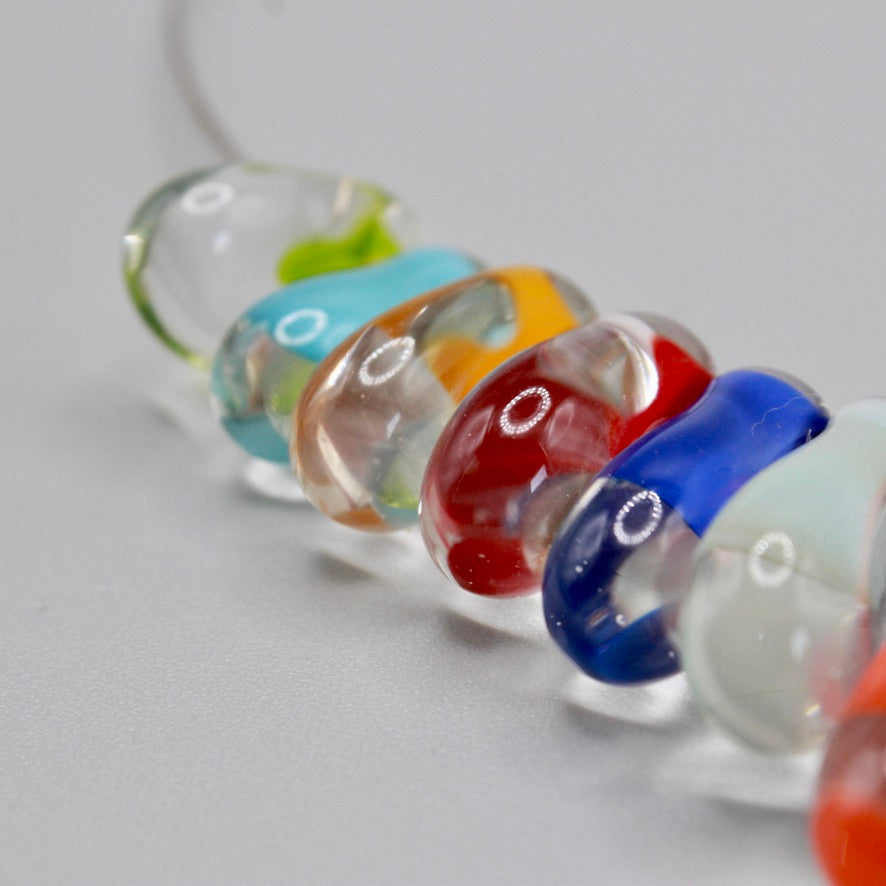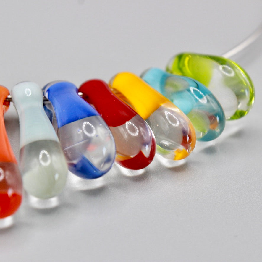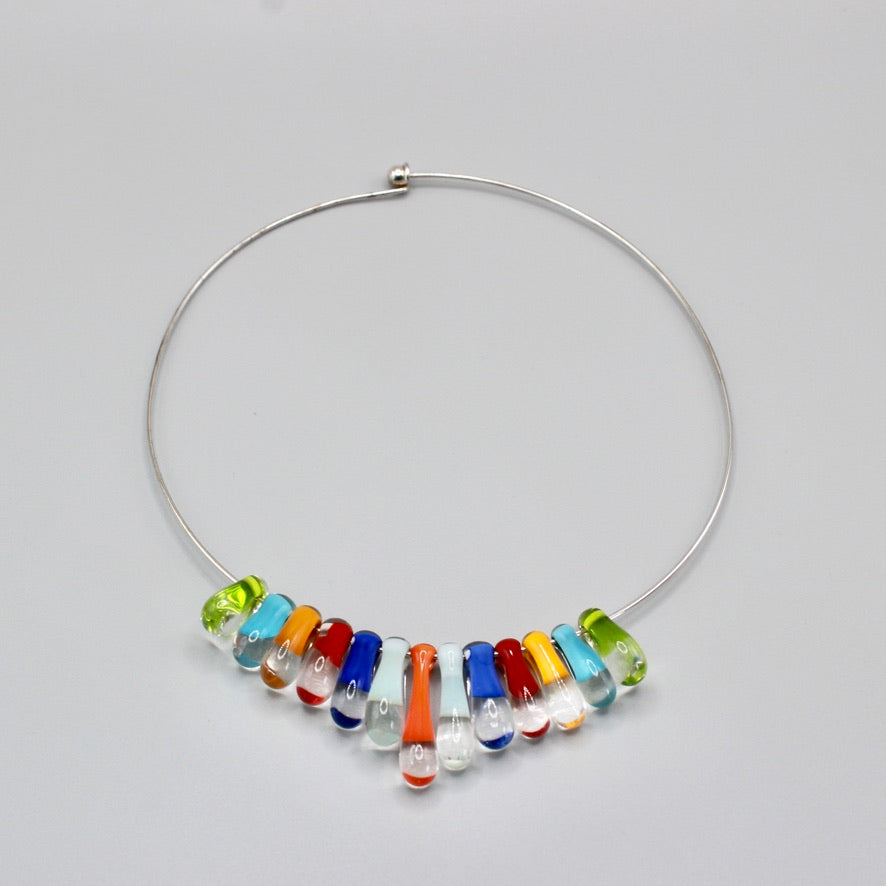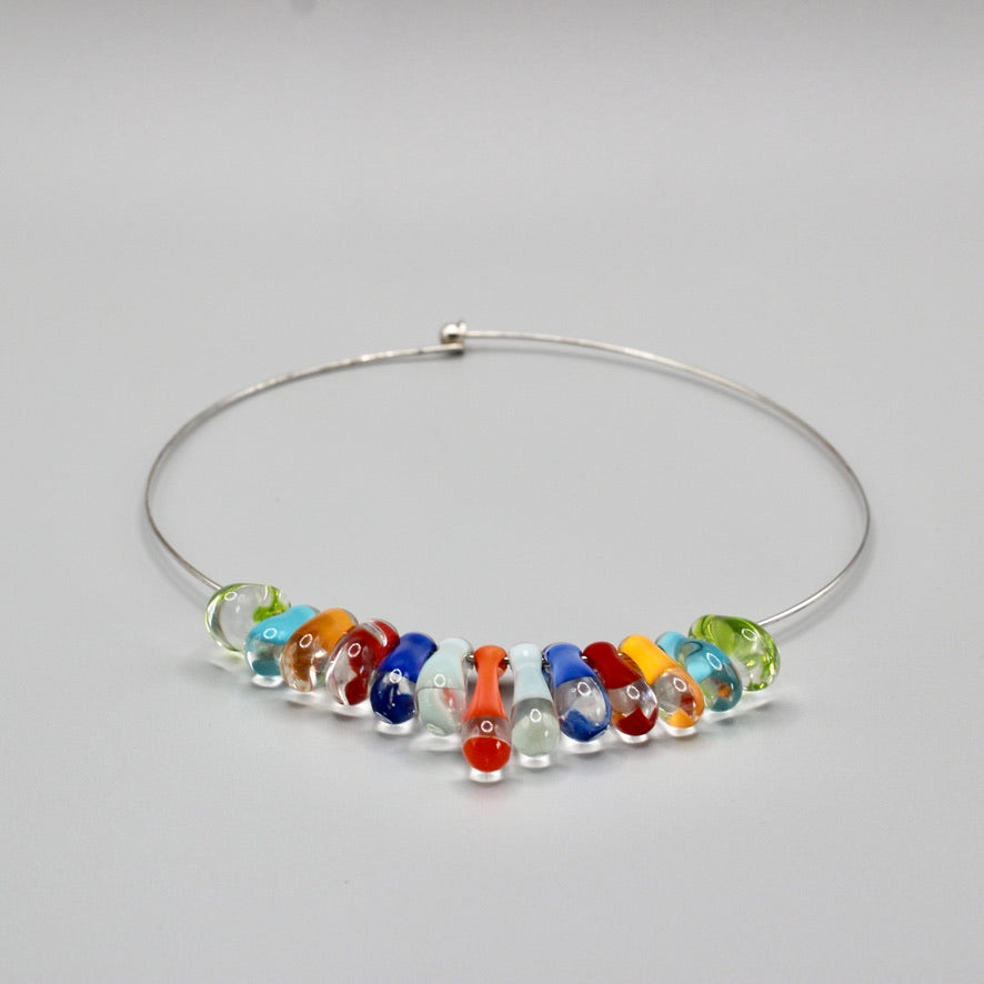 Ras de cou gouttes en verre de Murano filé au chalumeau par Pasc@l le perlier d'art maison montée sur un ras de cou rigide en métal qui s'adaptera parfaitement et facilement à tous les tours de cou, en un clin d’œil joyeux.