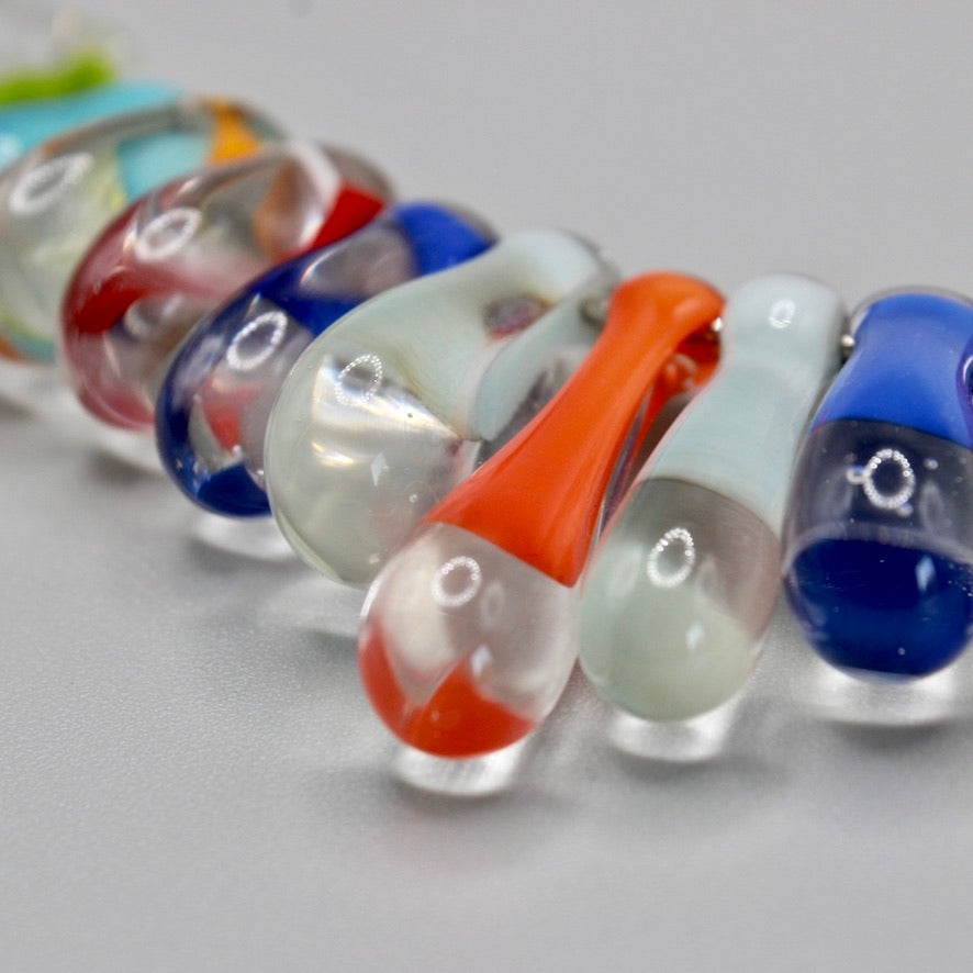 Perles en forme de gouttes et rondes aux couleurs chaleureuses enrobées de cristal transparent en verre de Murano maison filé à la flamme avec la bélière incluse (13)