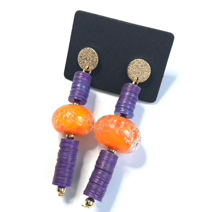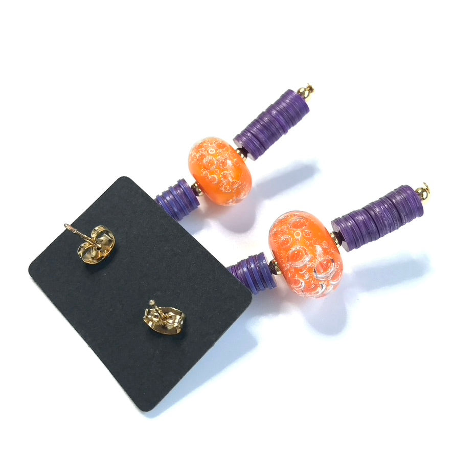 Perles rondes couleur orange avec insertion de bulles en verre de Murano filé au chalumeau par P@scal le perlier d'art maison (2)