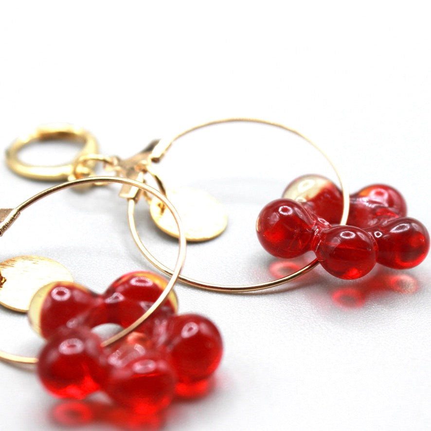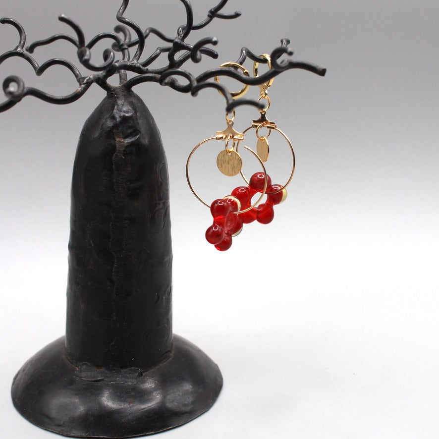 Margerita Fleurs Boucles dorées à l'or fin Murano Rouge Passion