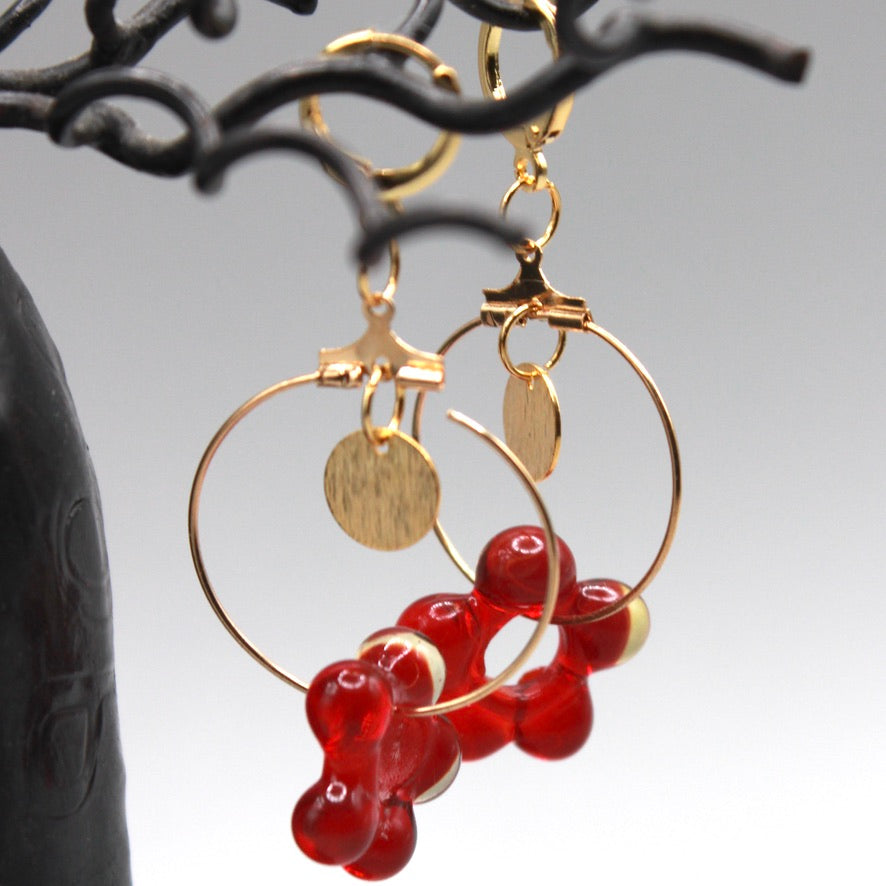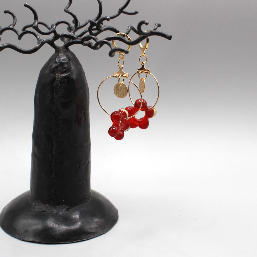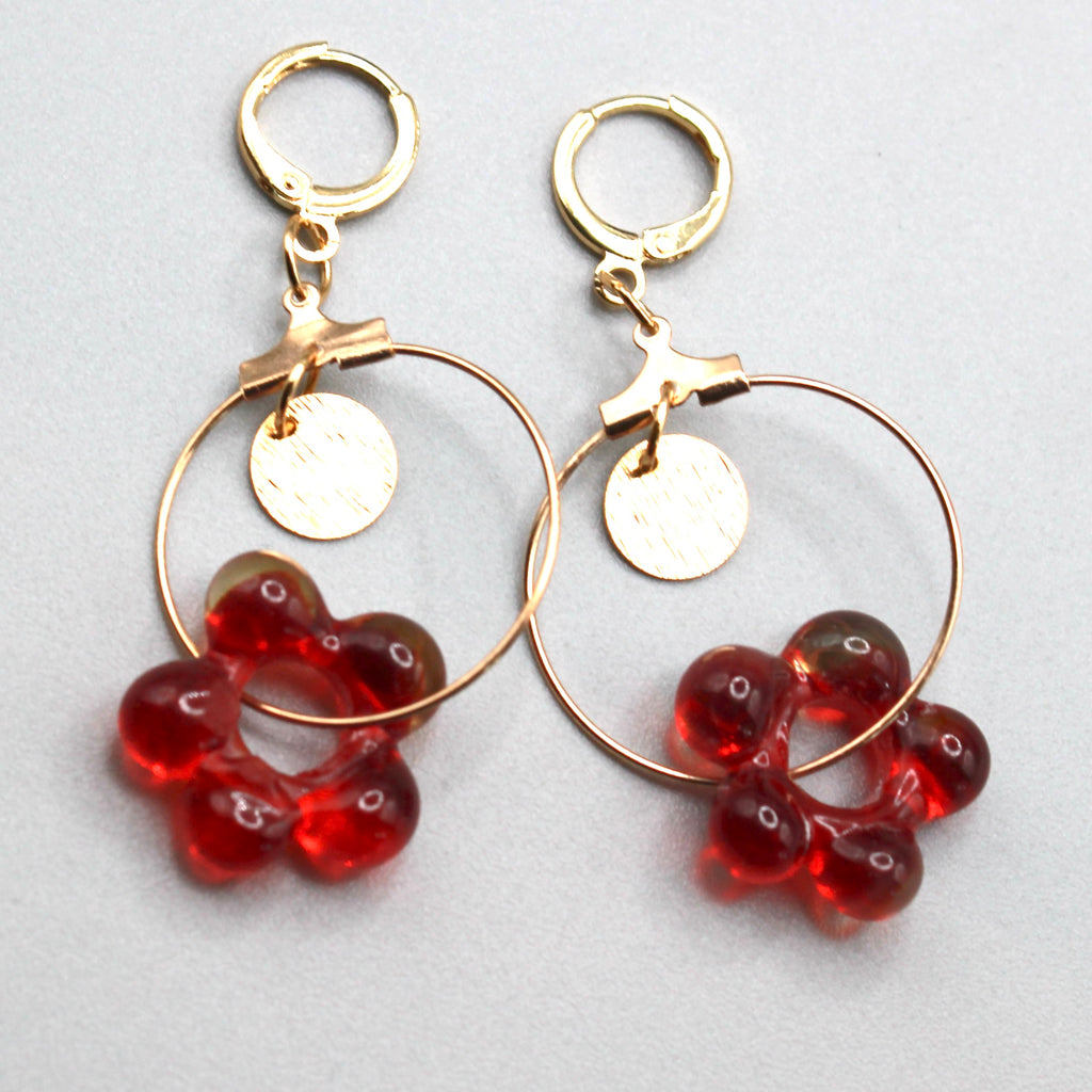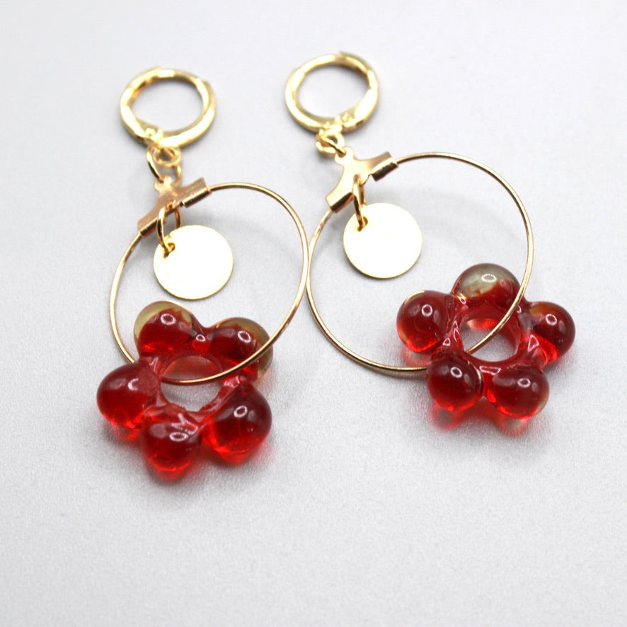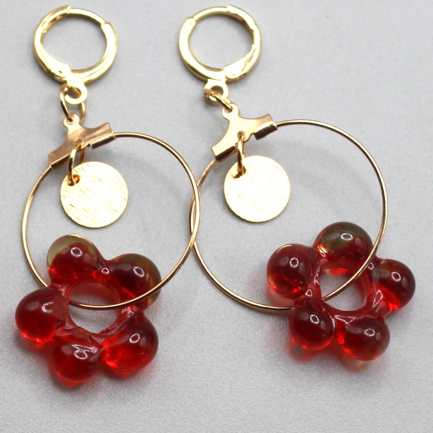 Fleurs Boucles dorées à l'or fin Murano Rouge Passion